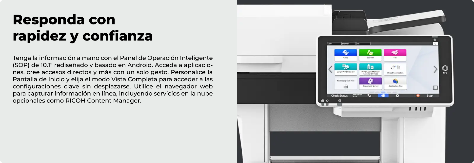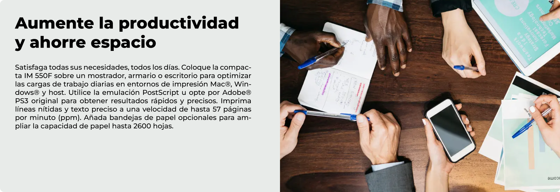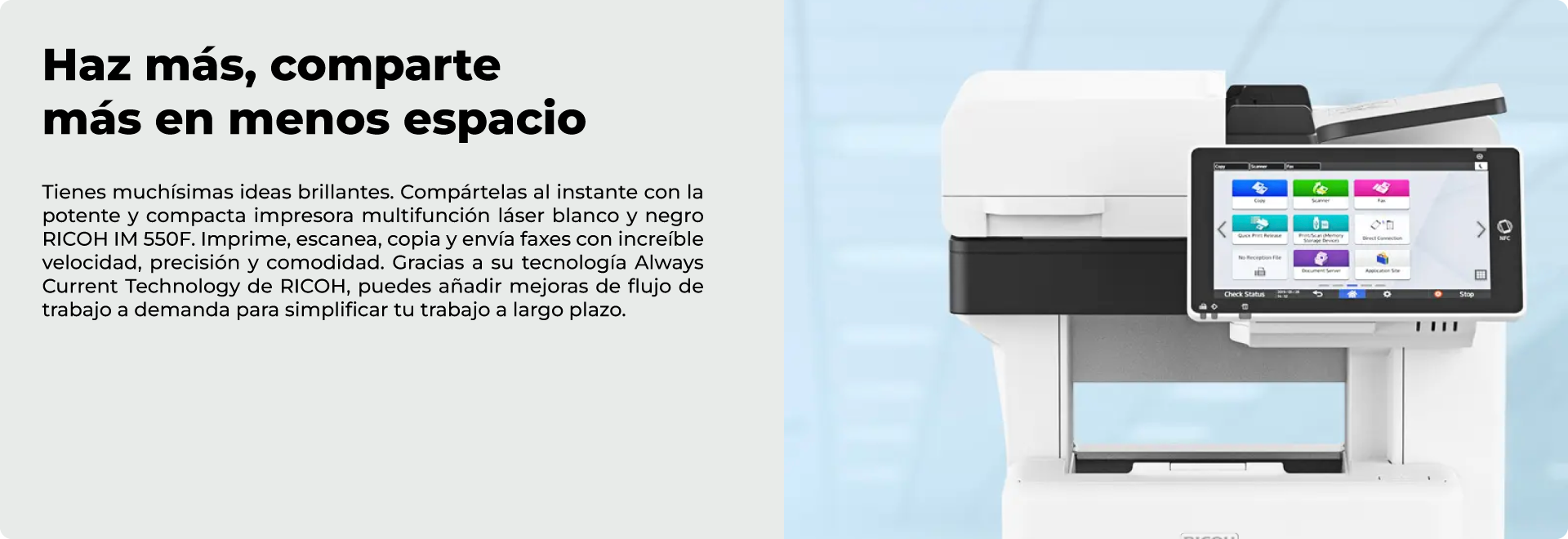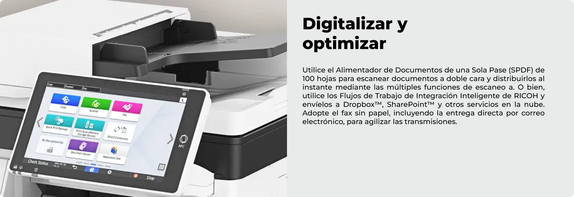 - Imprime hasta 45 ppm, copia, escanea, envía fax