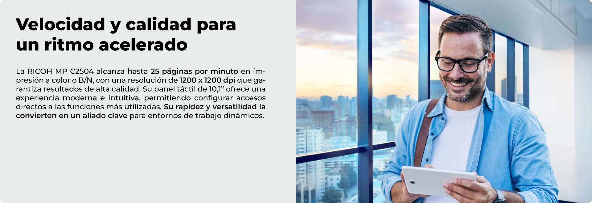 Velocidad de salida Copiar/Imprimir | 25 ppm en blanco y negro y FC (LTR) |