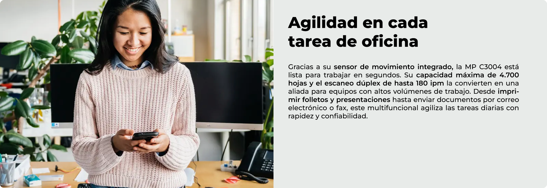 Velocidad de salida Copiar/Imprimir | 30 ppm en blanco y negro y FC (LTR) |