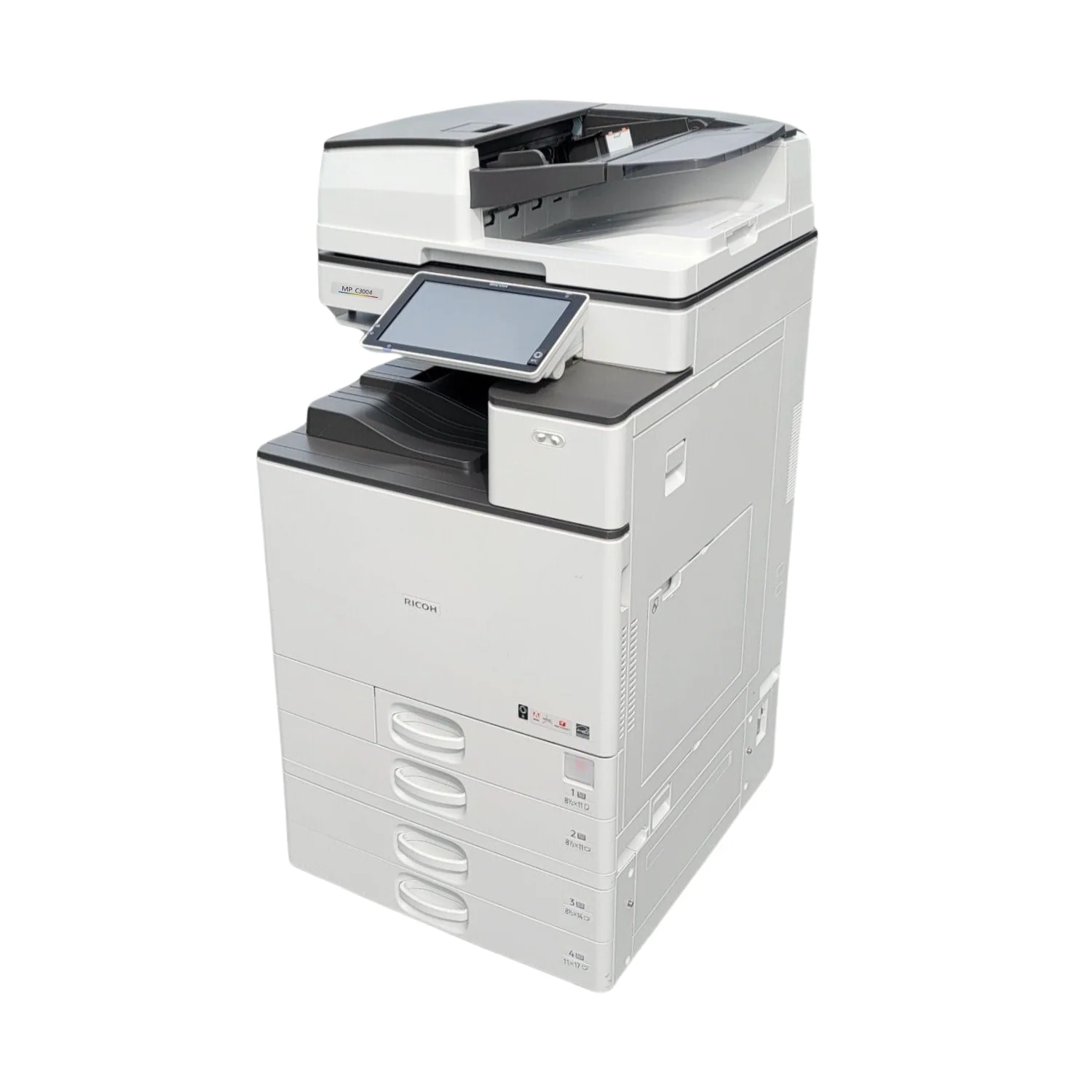 Alimentador de documentos de una sola pasada (SPDF) | Capacidad original: 220 hojas. Tamaño original: 5,5″ x 8,5″ – 11″ x 17″ (A5-A3). Gramajes del papel: Simplex: 11-34 lb Bond (40-128 g/m²), Dúplex: 14-34 lb Bond (52-128 g/m²). |