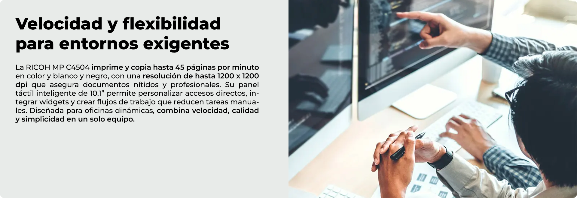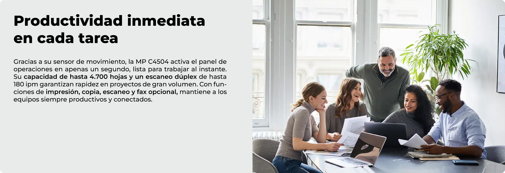 - Imprime hasta 45 ppm, copia, escaneo, fax